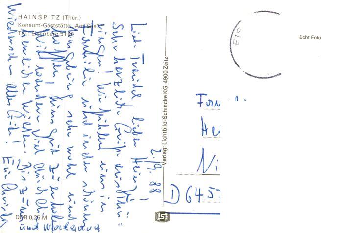 73888891 alte Postkarte Hainspitz Konsum Gaststaette Am See postalisch gelaufen Erhaltung siehe scans [FriedD77] KatCode: 11110016074037