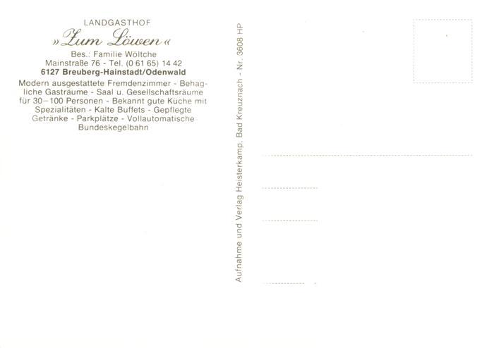 73890804 Hainstadt Breuberg Erbach Odenwald Hessen Landgasthof Zum Loewen Gastraeume postalisch nicht gelaufen Erhaltung siehe scans [WerneD78] KatCode: 11110006437004