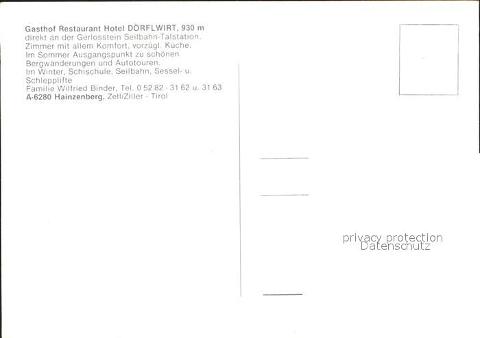 71952354 Hainzenberg Hotel Doerflwirt Gasthof postalisch nicht gelaufen Erhaltung siehe scans KatCode: 11390335070914