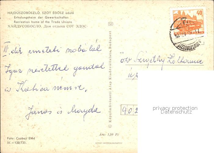 old postcard Hajdúszoboszló Erholungsheim der Gewerkschaften postalisch gelaufen Erhaltung siehe scans