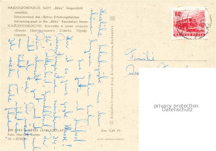 74044127 old postcard Hajduszoboszlo HU Schwimmbad des Beke Erholungsheimes postalisch gelaufen Erhaltung siehe scans [WerneD78] KatCode: 11550