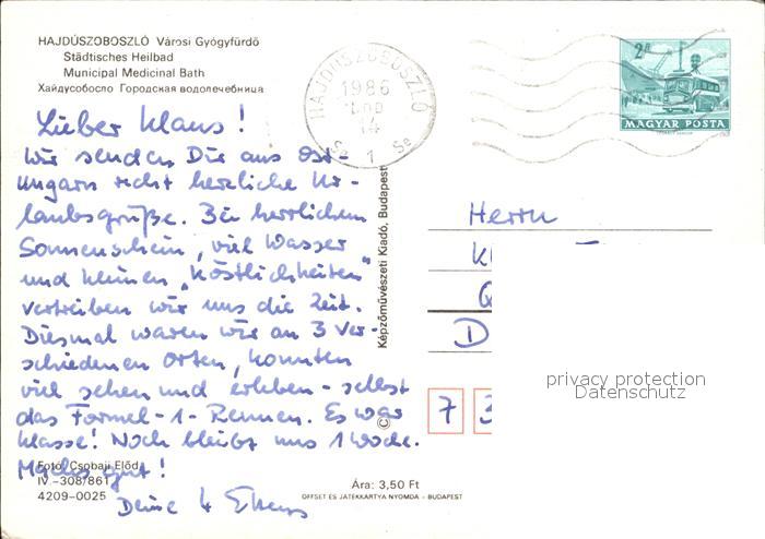 old postcard Hajdúszoboszló Staedtisches Heilbad postalisch gelaufen Erhaltung siehe scans