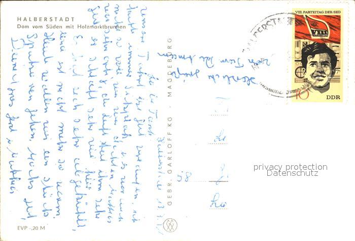 72341679 alte Postkarte Halberstadt Dom Holzmarktbrunnen postalisch gelaufen Erhaltung siehe scans KatCode: 11110015085135