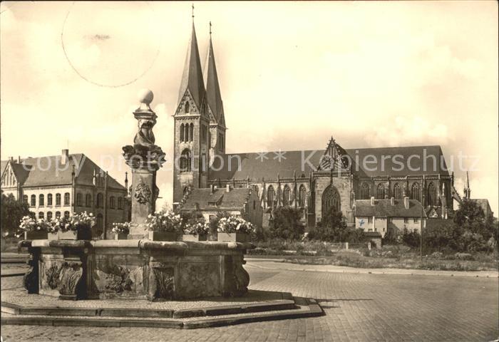 Halberstadt Dom von Sueden mit Holzmarktbrunnen