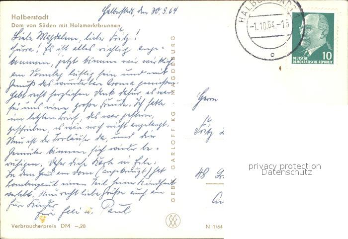 72091970 alte Postkarte Halberstadt Dom von Sueden mit Holzmarktbrunnen postalisch gelaufen Erhaltung siehe scans KatCode: 11110015085135