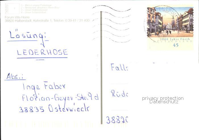 71928761 alte Postkarte Halberstadt Forum Villa Heine postalisch gelaufen Erhaltung siehe scans KatCode: 11110015085135
