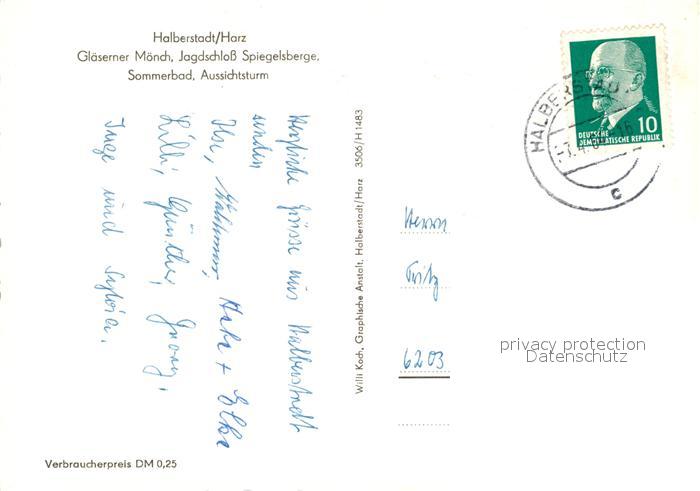 73151952 alte Postkarte Halberstadt Glaeserner Moench Jagdschloss Sommerbad postalisch gelaufen Erhaltung siehe scans [KathaD81] KatCode: 11110015085135