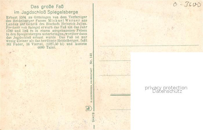 43496302 Halberstadt Grosses Weinfass im Jagdschloss Spiegelsberge Kuenstlerkarte postalisch nicht gelaufen Erhaltung siehe scans [FriedD77] KatCode: 11110015085135