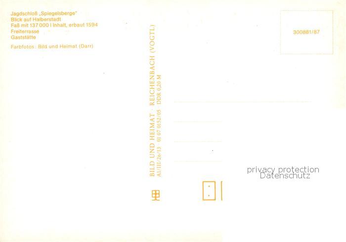73858032 Halberstadt Jagdschloss Spiegelsberge Fass Freiterrasse Gaststaette postalisch nicht gelaufen Erhaltung siehe scans [WerneD78] KatCode: 11110015085135