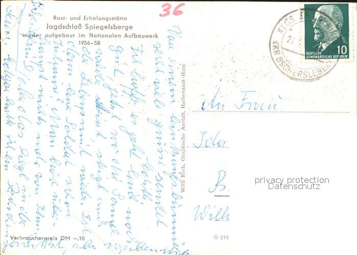 72474633 alte Postkarte Halberstadt Jagdschloss Spiegelsberge mit grossem Fass postalisch gelaufen Erhaltung siehe scans KatCode: 11110015085135