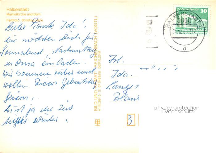 73064609 alte Postkarte Halberstadt Martinikirche und Dom postalisch gelaufen Erhaltung siehe scans [FriedD77] KatCode: 11110015085135