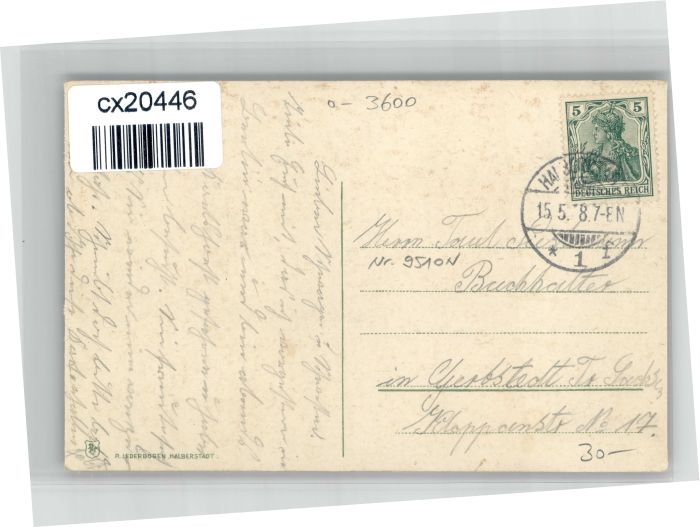 30740266 alte Postkarte Halberstadt [Stempelabschlag] Brauerei Roederhof postalisch gelaufen KatCode: 11110015085135