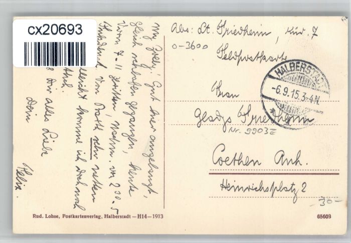 30740284 alte Postkarte Halberstadt Thierschweg postalisch gelaufen KatCode: 11110015085135