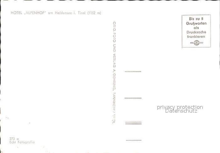 12513028 Haldensee Hotel Alpenhof postalisch nicht gelaufen Erhaltung siehe scans KatCode: 11390