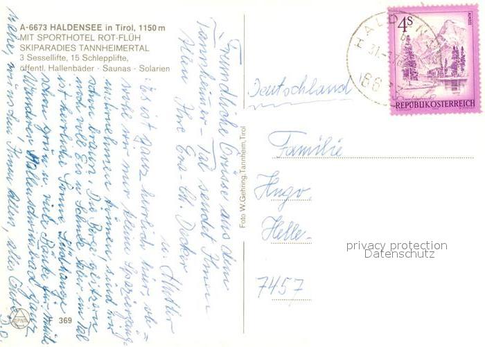13317032 alte Postkarte Haldensee mit Sporthotel Rot Flueh postalisch gelaufen Erhaltung siehe scans [WerneD78] KatCode: 11390