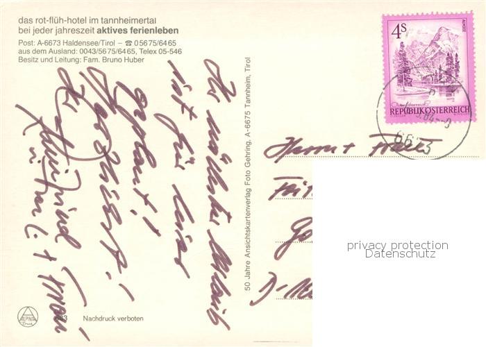 73764266 alte Postkarte Haldensee Rot-Flueh-Hotel Tannenheimertal Teilansichten postalisch gelaufen Erhaltung siehe scans [LiesaD40] KatCode: 11390
