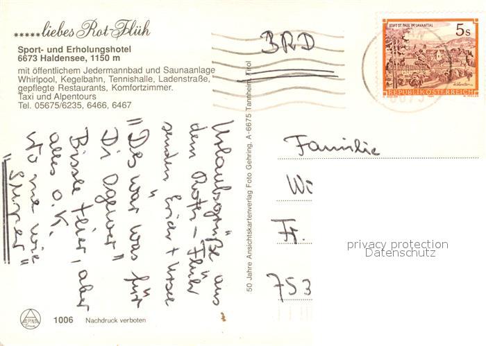 13211376 alte Postkarte Haldensee Sporthotel liebes Rot-Flueh postalisch gelaufen Erhaltung siehe scans [LiesaD40] KatCode: 11390