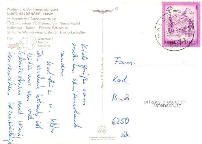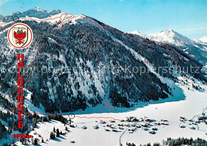 73219744 alte Postkarte Haldensee Winter und Sommererholungsort Tannheimertal Wintersportplatz Alpen Fliegeraufnahme postalisch gelaufen Erhaltung siehe scans [FriedD77] KatCode: 11390