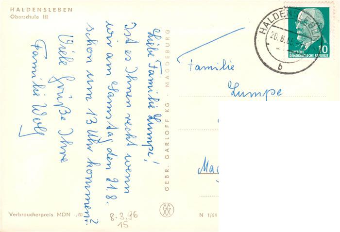 73891444 alte Postkarte Haldensleben Oberschule III postalisch gelaufen Erhaltung siehe scans [WerneD78] KatCode: 11110015083270