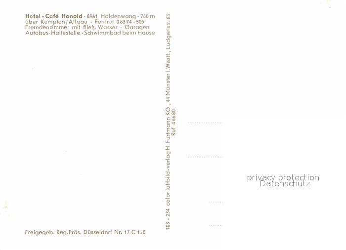 72917669 Haldenwang Allgaeu Hotel Cafe Honold Freibad Fliegeraufnahme postalisch nicht gelaufen Erhaltung siehe scans [FriedD77] KatCode: 11110009780122