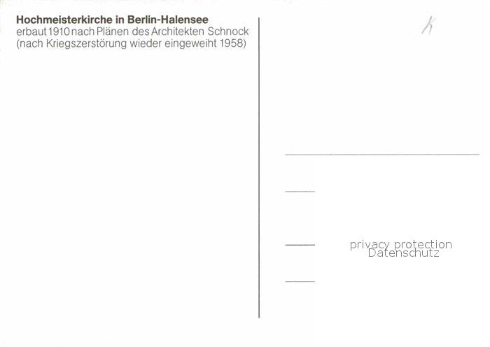 72895116 Halensee Grunewald CHARLOTTENBURG-WILMERSDORF BERLIN Hochmeisterkirche postalisch nicht gelaufen Erhaltung siehe scans [KathaD81] KatCode: 11110011000000