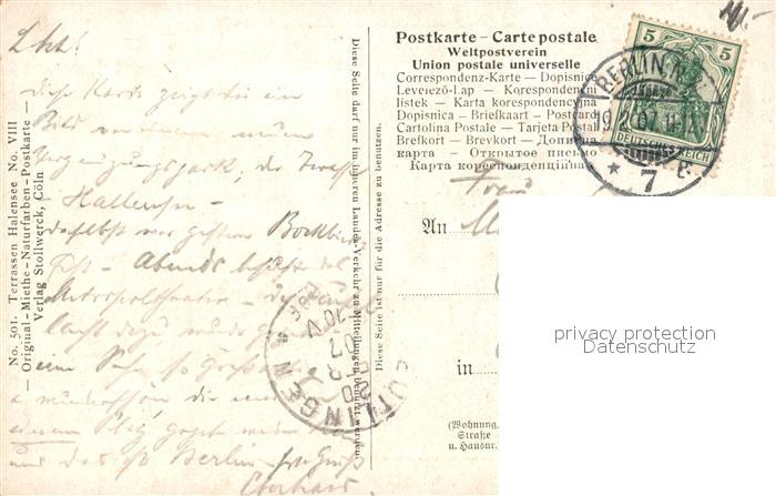 73565146 alte Postkarte Halensee Grunewald CHARLOTTENBURG-WILMERSDORF BERLIN Restaurant Terrassen postalisch gelaufen Erhaltung siehe scans [KathaD81] KatCode: 11110011000000