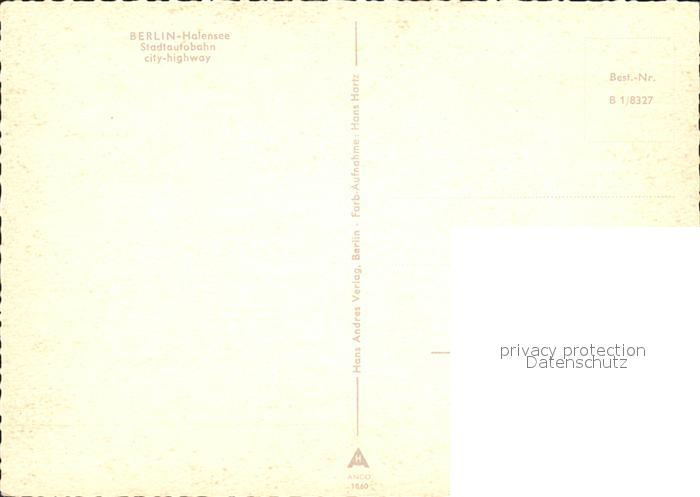 72403206 Halensee Grunewald CHARLOTTENBURG-WILMERSDORF BERLIN Stadtautobahn postalisch nicht gelaufen Erhaltung siehe scans KatCode: 11110011000000