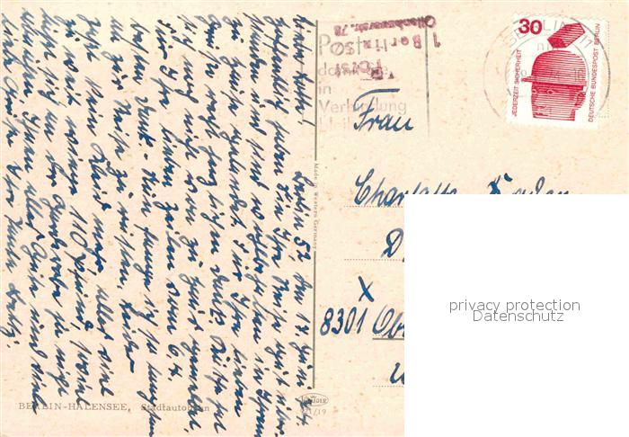 72627629 Halensee Grunewald CHARLOTTENBURG-WILMERSDORF BERLIN Stadtautobahn postalisch gelaufen Erhaltung siehe scans [WerneD78] alte Postkarte Wern Katcode 11110011000000