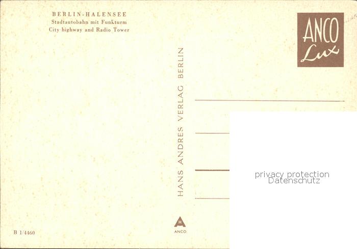 72139875 Halensee Grunewald CHARLOTTENBURG-WILMERSDORF BERLIN Stadtautobahn mit Funkturm postalisch nicht gelaufen Erhaltung siehe scans Alte Ansichtskarte Postkarte Frie Katcode 11110011000000