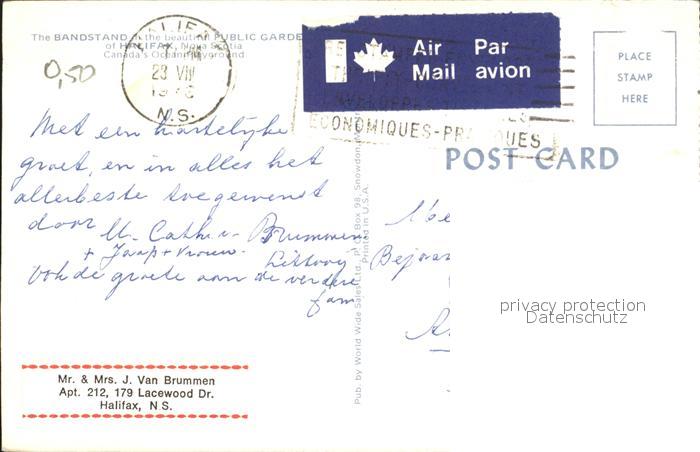 old postcard Halifax Nova Scotia Bandstand in Public Garden postalisch gelaufen Erhaltung siehe scans