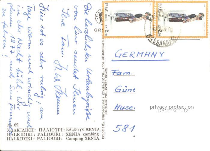 old postcard Halkidiki Chalkidiki Camping Paliuri postalisch gelaufen Erhaltung siehe scans
