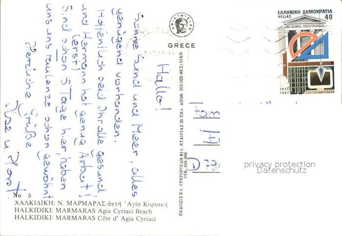 old postcard Halkidiki Chalkidiki Marmaras Agia Cyriaci Beach postalisch gelaufen Erhaltung siehe scans