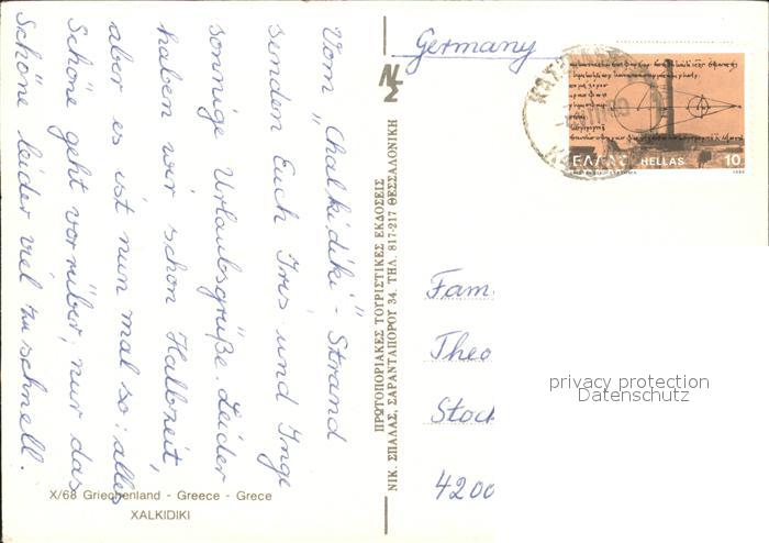 old postcard Halkidiki Chalkidiki Pallini beach hotel postalisch gelaufen