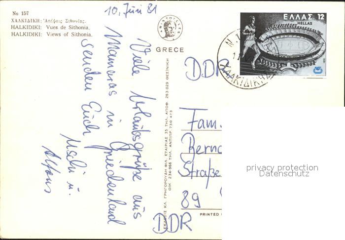 old postcard Halkidiki Chalkidiki Sithonia Strande postalisch gelaufen Erhaltung siehe scans