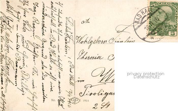 43057631 alte Postkarte Hall Oberoesterreich Bad Panorama Kirche postalisch gelaufen Erhaltung siehe scans [KathaD81] KatCode: 11390314041503