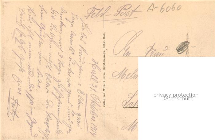 43350146 Hall Schwaben Sulfersteg mit Turm Feldpost postalisch nicht gelaufen Erhaltung siehe scans [WerneD78] KatCode: 11110008127076
