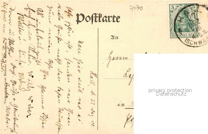 42669590 alte Postkarte Hall Schwaben Teilansicht Zeichnung postalisch gelaufen Erhaltung siehe scans [WerneD78] KatCode: 11110008127076