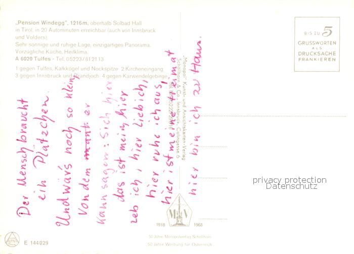 73224257 Hall Tirol Gasthof Pension Windegg Kirche Alpenpanorama postalisch nicht gelaufen Erhaltung siehe scans [FriedD77] KatCode: 11390332070354