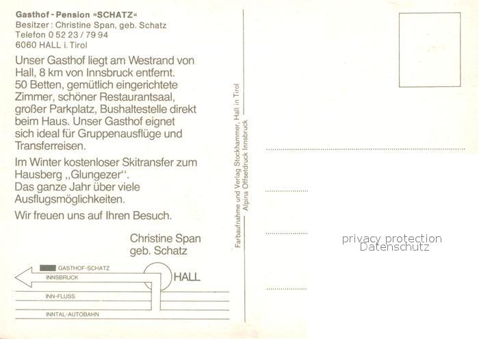 73171761 Hall Tirol Gasthof Schatz postalisch nicht gelaufen Erhaltung siehe scans [NatalD47] KatCode: 11390332070354