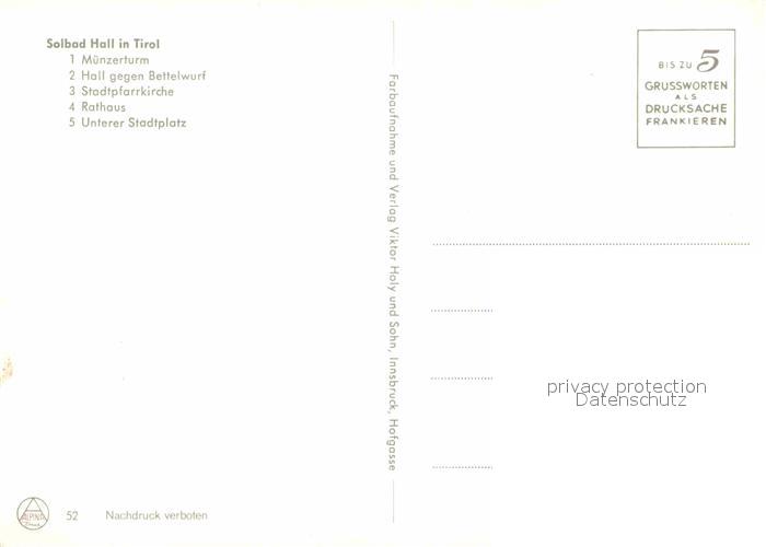 72906885 Hall Tirol Muenzerturm Bettelwurf Rathaus Unterer-Stadtplatz postalisch nicht gelaufen Erhaltung siehe scans [LiesaD40] KatCode: 11390332070354