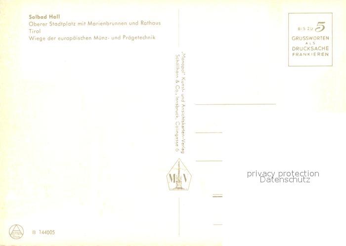 73601702 Hall Tirol Oberer Stadtplatz mit Marienbrunnen und Rathaus postalisch nicht gelaufen Erhaltung siehe scans [WerneD78] KatCode: 11390332070354