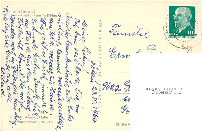 73547415 alte Postkarte Halle Saale Bezirkskrankenhaus in Doelau postalisch gelaufen Erhaltung siehe scans [WerneD78] KatCode: 11110015002000