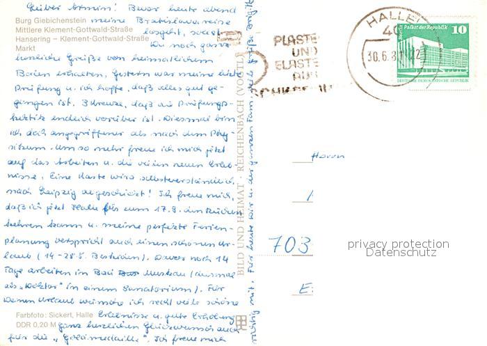 72953668 alte Postkarte Halle Saale Burg Giebichenstein Klement Gottwald Str Hansering Markt Kirche postalisch gelaufen Erhaltung siehe scans [WerneD78] KatCode: 11110015002000