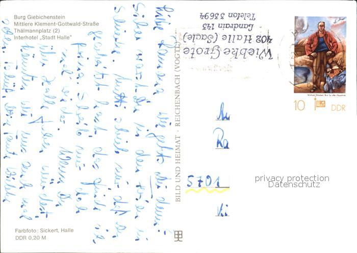72424106 alte Postkarte Halle Saale Burg Giebichenstein Klement Gottwald Str Thaelmannplatz Interhotel Stadt Halle postalisch gelaufen Erhaltung siehe scans KatCode: 11110015002000