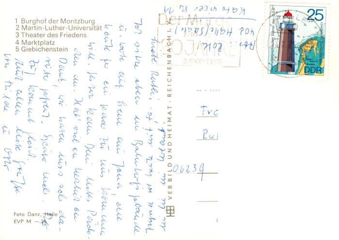 73906404 Halle Saale Burghof Moritzburg Martin Luther Universitaet Theater des Friedens Marktplatz Burg Giebichenstein postalisch gelaufen Erhaltung siehe scans [WerneD78] alte Postkarte Wern Katcode 11110015002000