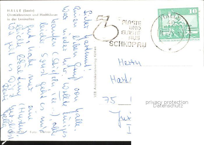 72022605 alte Postkarte Halle Saale Chemiebrunnen Leninallee postalisch gelaufen Erhaltung siehe scans KatCode: 11110015002000