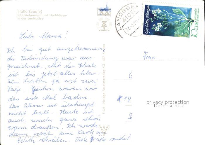 72112812 alte Postkarte Halle Saale Chemiebrunnen und Hochhaeuser in der Leninallee postalisch gelaufen Erhaltung siehe scans KatCode: 11110015002000