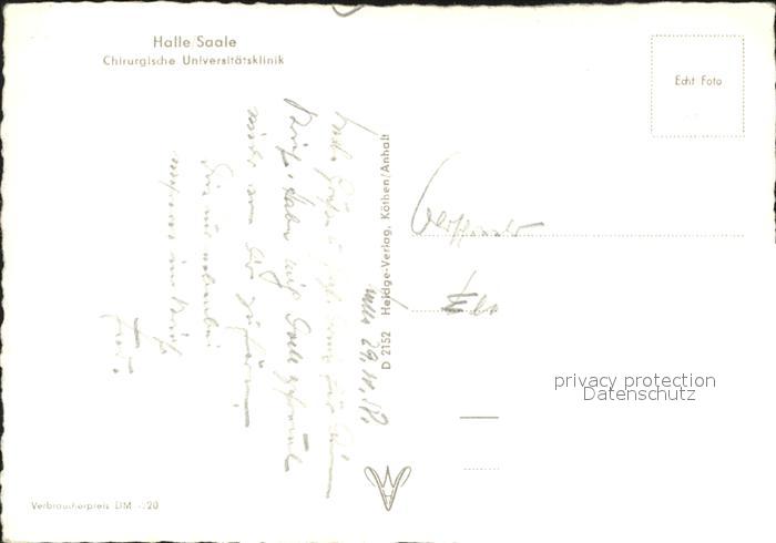 72341654 Halle Saale Chirurgische Universitaetsklinik postalisch nicht gelaufen Erhaltung siehe scans KatCode: 11110015002000