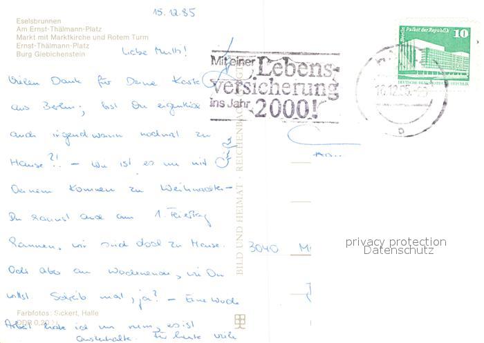 72950804 alte Postkarte Halle Saale Eselsbrunnen Thaelmann Plat Markt Marktkirche Roter Turm Burg Giebichenstein postalisch gelaufen Erhaltung siehe scans [WerneD78] KatCode: 11110015002000