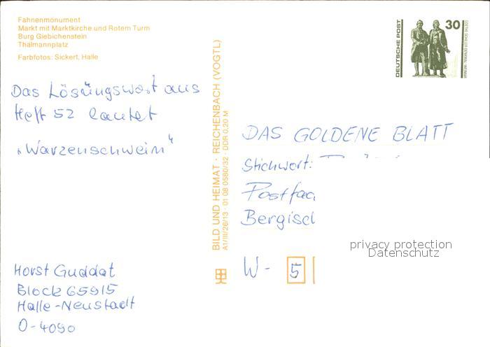 72415459 Halle Saale Fahnenmonument Markt Kirche Rotem Turm Burg Thaelmannplatz postalisch nicht gelaufen Erhaltung siehe scans KatCode: 11110015002000